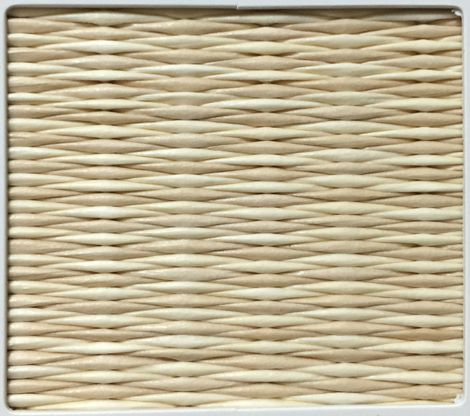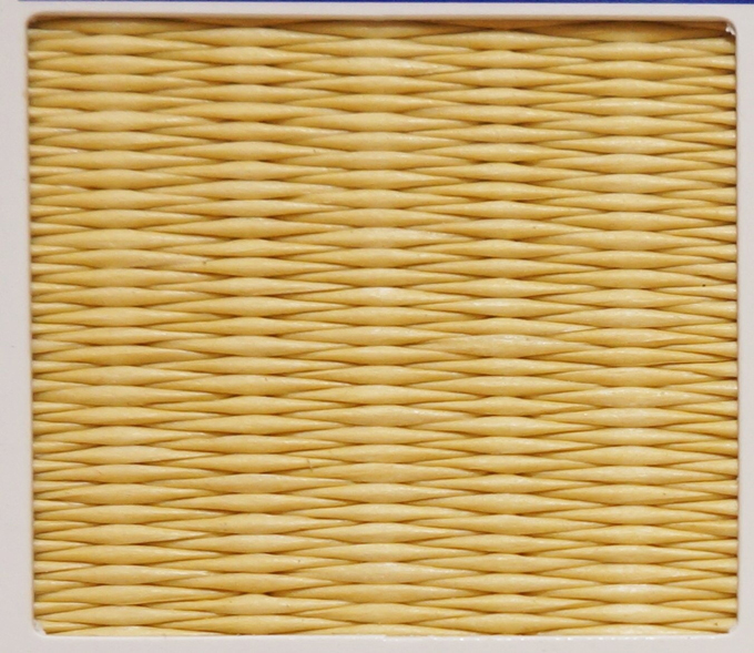 機械抄和紙をこよりにして、樹脂コーティングしています。い草に比べて、ダニ・カビの心配は少なく、色あせもほとんどありません。 |
